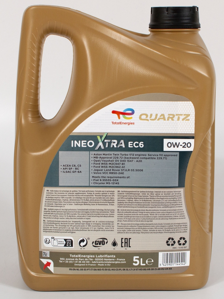 Total Quartz Ineo Xtra EC6 0W-20 — это современное синтетическое моторное масло, разработанное специально для бензиновых и дизельных двигателей легковых автомобилей. Масло для мотора Total 0-20 обладает уникальной формулой, которая обеспечивает отличную защиту двигателя и продлевает его срок службы.